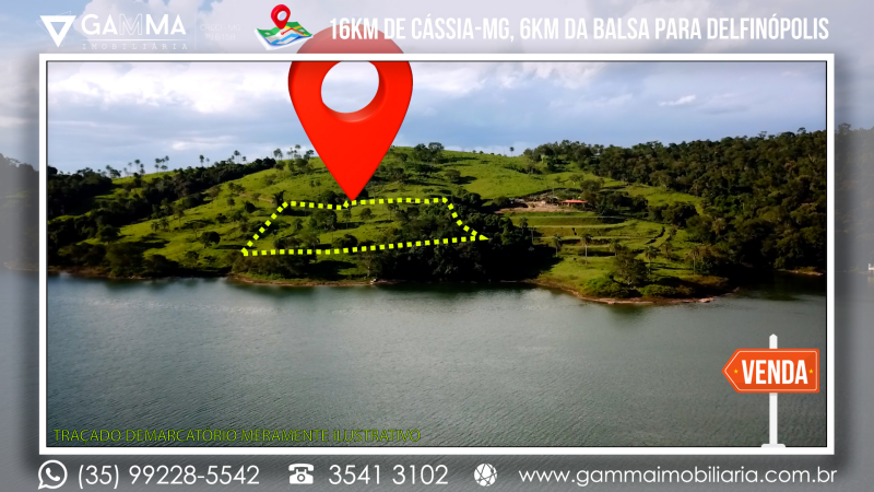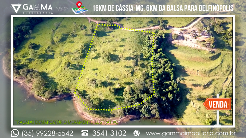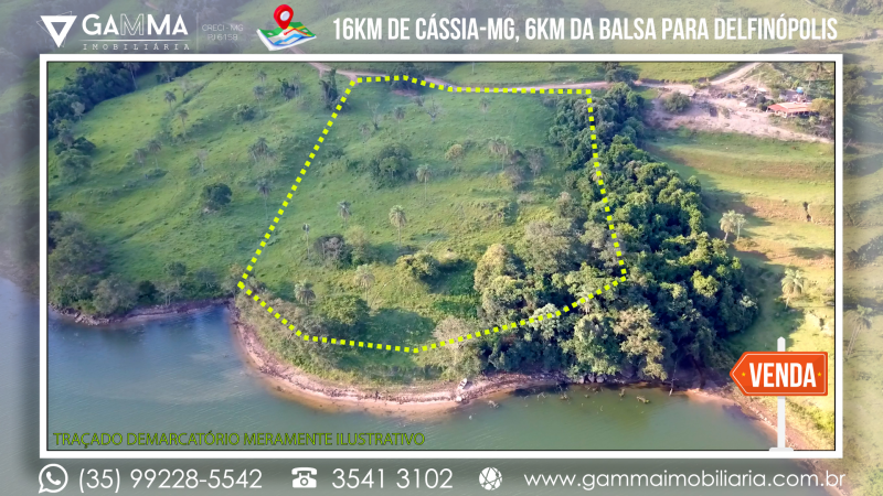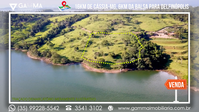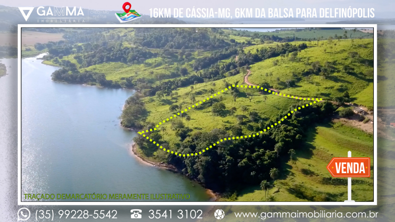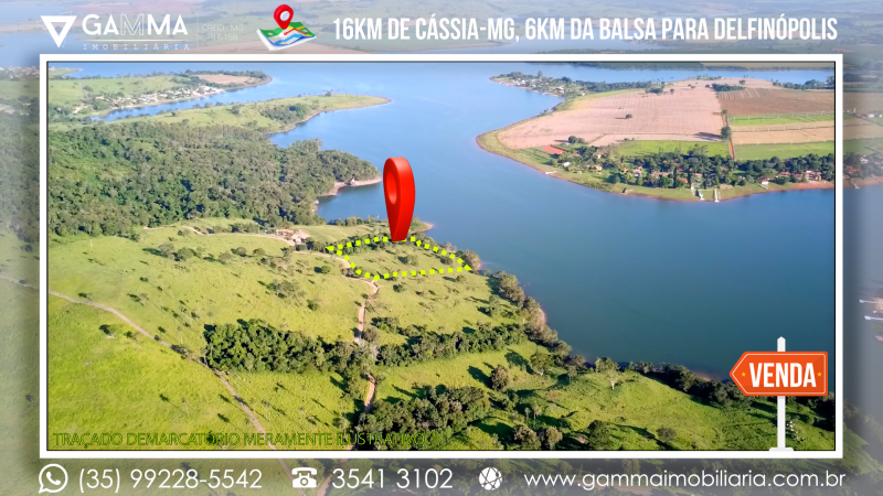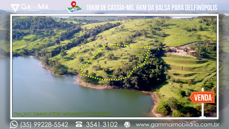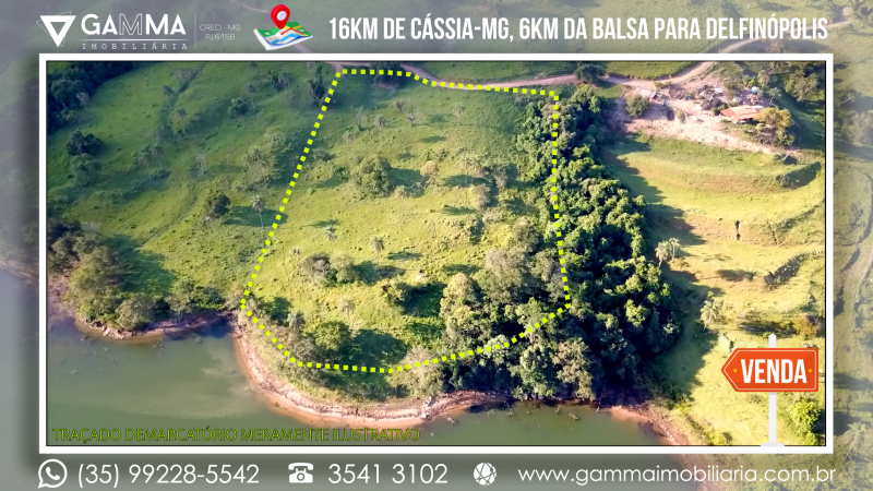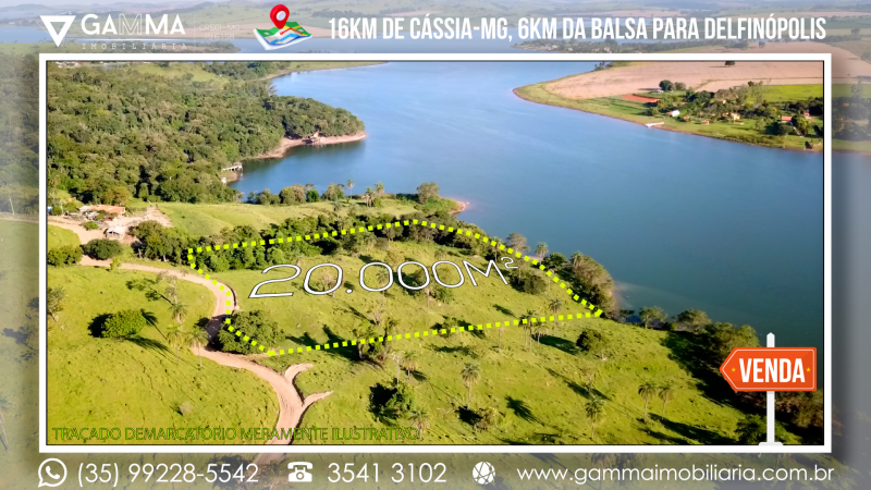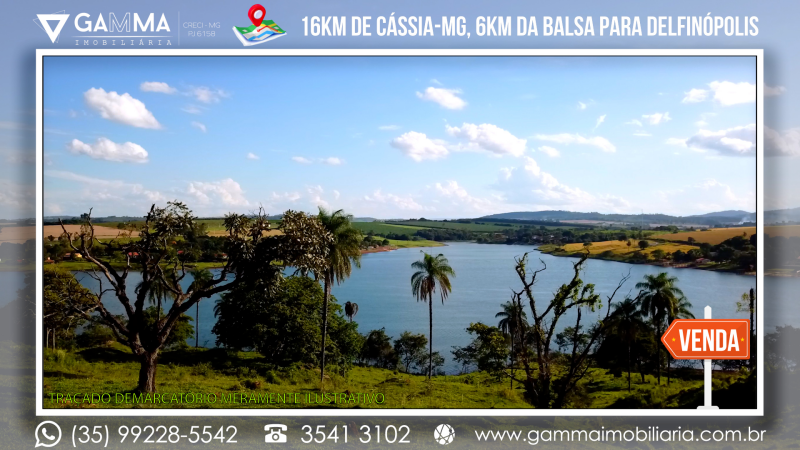 🏠Composição: Vinte mil metros quadrados a apenas 16 km de Cássia-MG e a 6 km da balsa que liga Cássia a Delfinópolis, com 120 metros de margem para a Represa de Peixoto, em local com ampla vista e muita água, com apenas 20 metros de desnível no terreno.